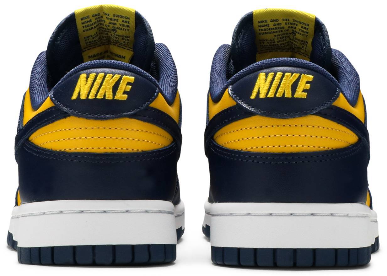 The 2021 edition of the Nike Dunk Low ‘Michigan’ offers a low-top interpretation of one of the silhouette’s original ‘Be True to Your School’ colorways, first released in 1985 and previously retroed in 2020. The all-leather upper is finished in a rich Varsity Maize hue with contrasting Midnight Navy hits on the Swoosh and forefoot and heel overlay. Padded comfort is provided by a low-cut collar and breathable nylon tongue, featuring a woven tag with traditional Nike branding.